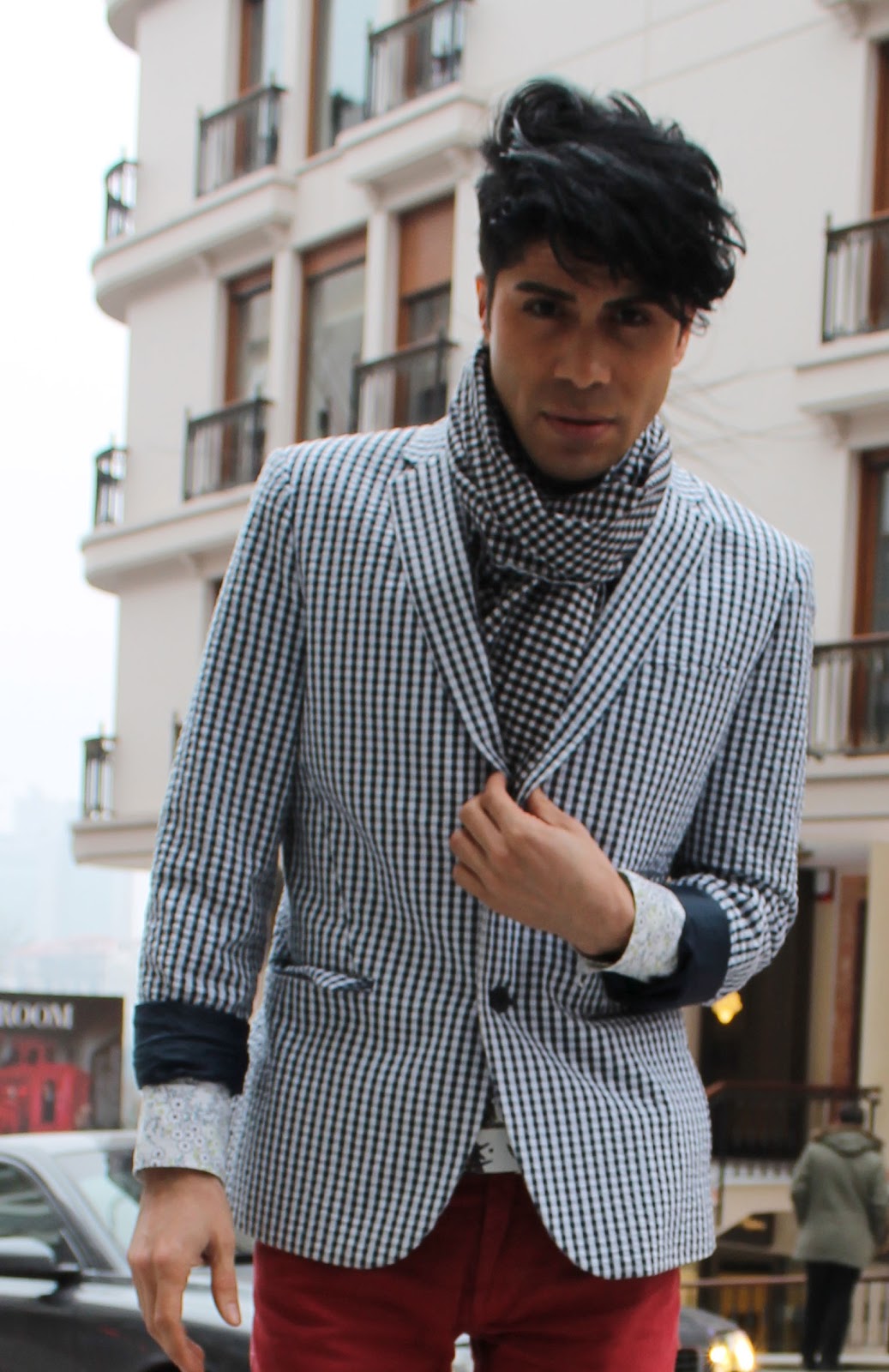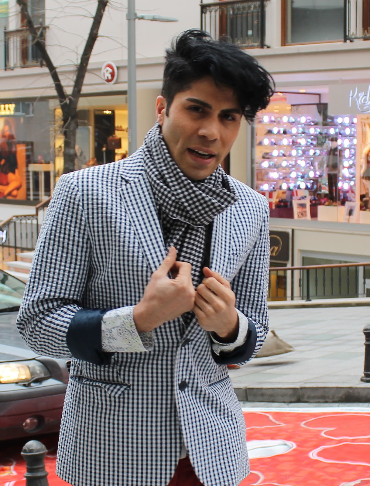 İtalya seyahatinde ki Floransa durağımızda H&M de %50 indirimini görüp aldığım bu pötikare ceketime bayılıyorum ve ona uysun diye aldığım pötikare kumaşıda annecime diktirip boynuma fular yaptırdım.
