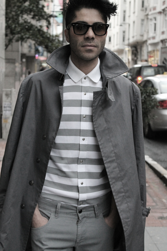 Farkettiğiniz gibi bu da Serdar Uzuntaş imzalı, baharda trençkot kent erkeğinin olmazsa olmazı aynı renk tonlarında polo yaka düğmeli t-shirt ve paçaları kısa pantalon ile uyumuda harika olmadı mı?